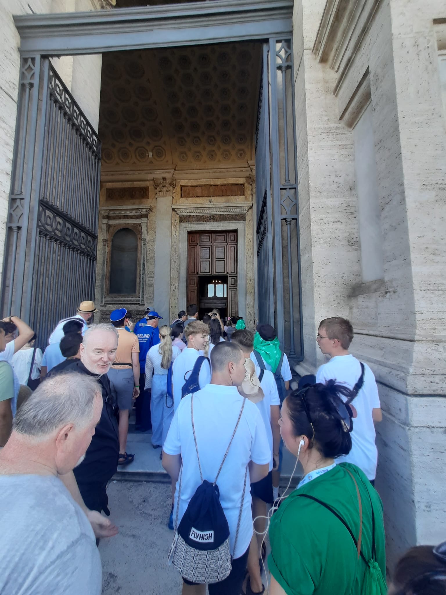 Prvou bazilikou, ktorú navštívili, bola Bazilika sv. Petra a prešli tiež svätou bránou. Večer sa zúčastnili na otváracej svätej omši na Svätopeterskom námestí,, ktorej predsedal arcibiskup Rino Fisichela pro-prefekt Dikastéria pre evanjelizáciu. Práve toto dikastérium Rímskej kúrie má na starosti organizáciu celého Jubilejného roka.