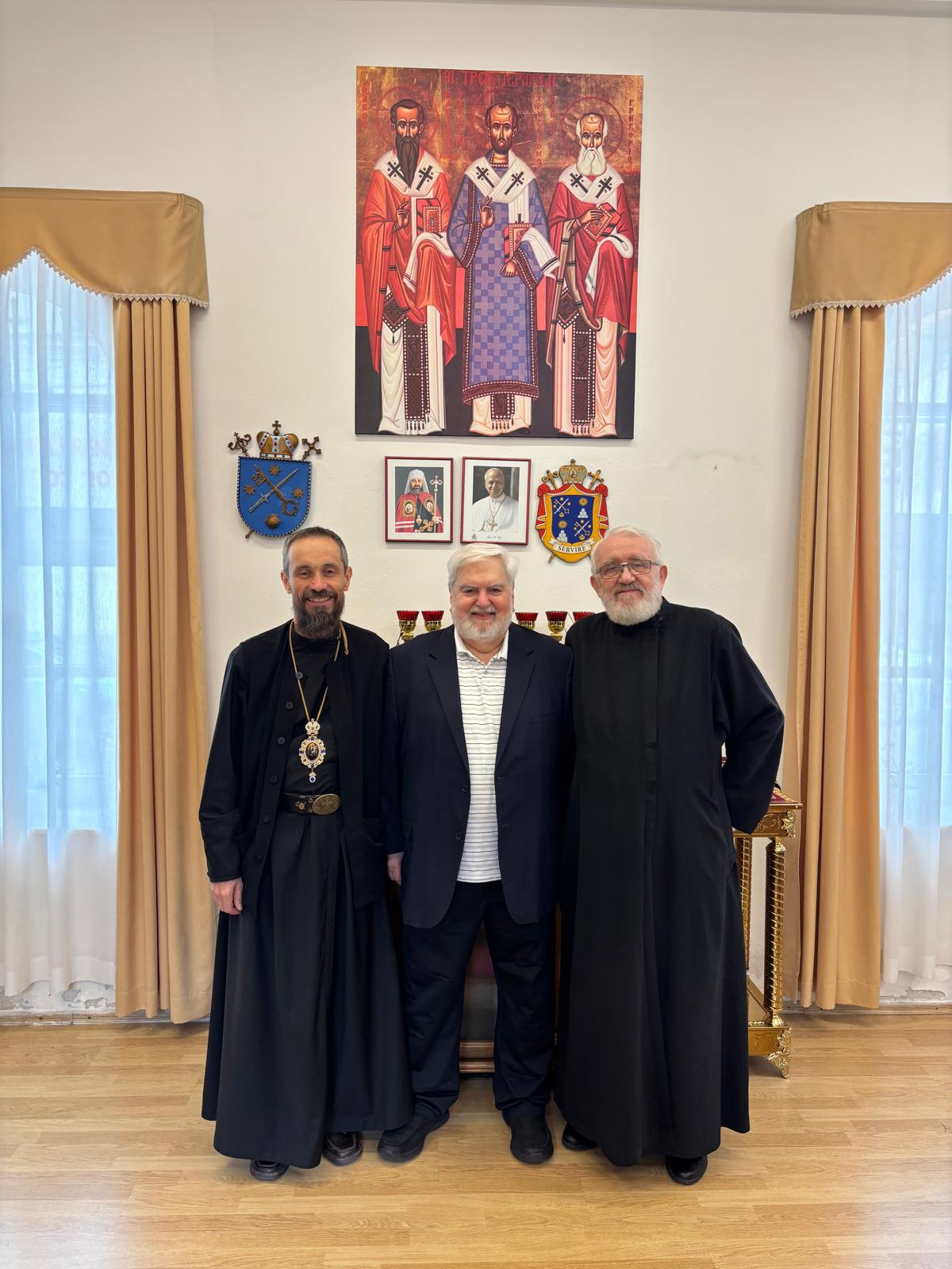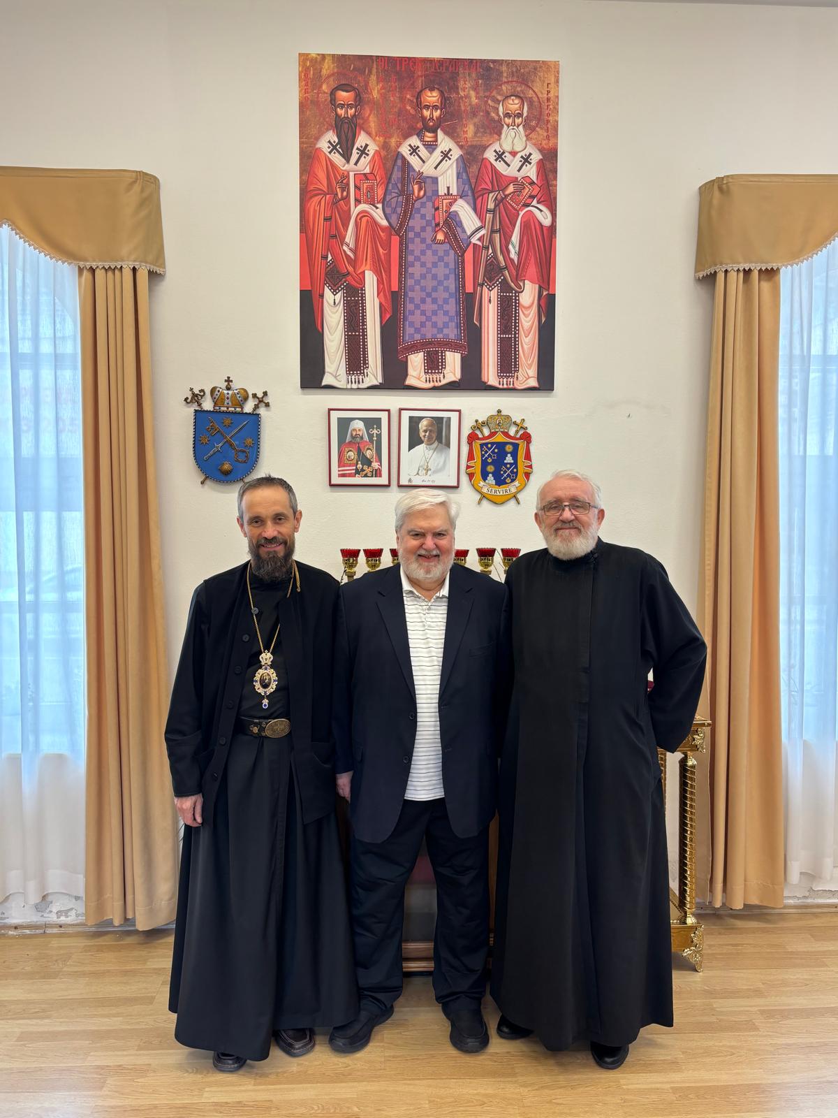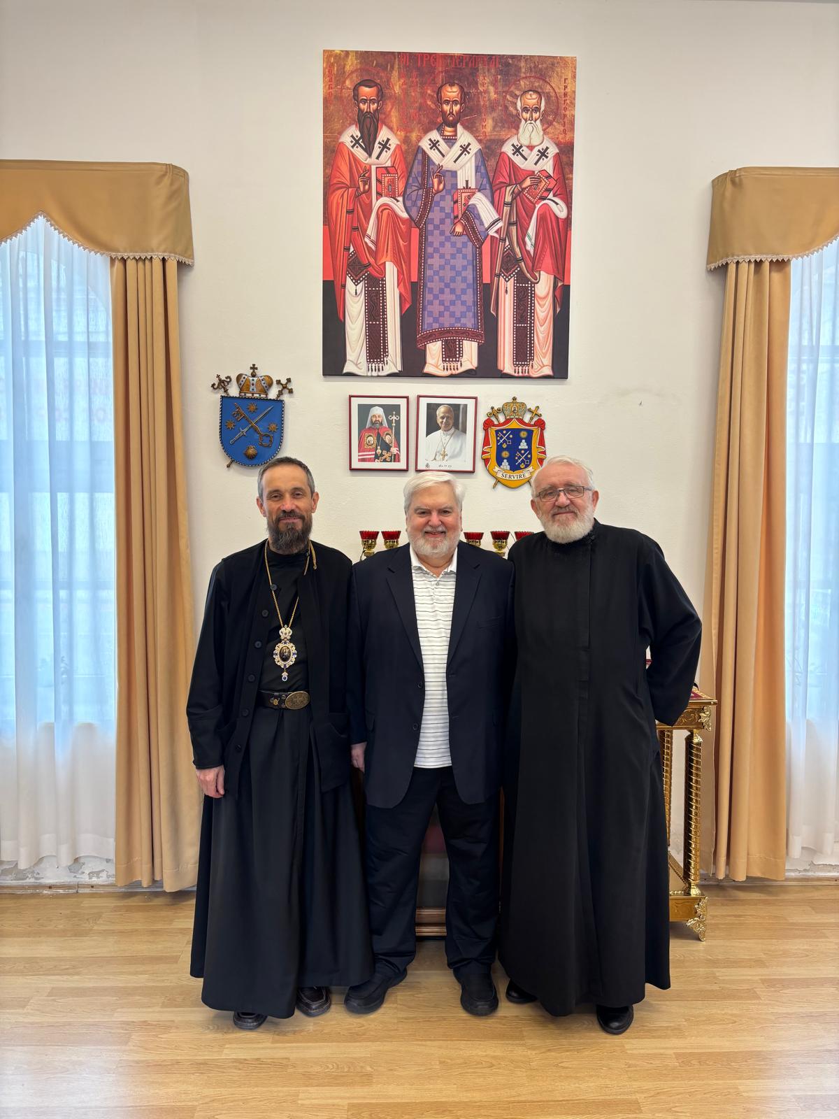 Vo štvrtok, 23. apríla 2026 navštívil Eparchiálny úrad v Bratislave významná osobnosť Byzantskej katolíckej cirkvi ruthénskej tradície z USA, pán Jack Figel. Na pôde úradu sa stretol s vladykom Milanom, bratislavským eparchiálnym biskupom, ako aj s vladykom Petrom, emeritným eparchom. Témou rozhovoru bola aktuálna situácia gréckokatolíckych cirkví v USA a na Slovensku a ekumenický dialóg.