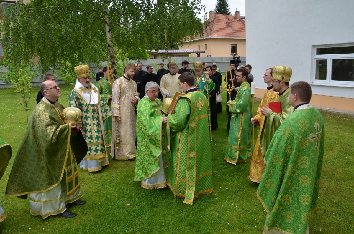 -1118_010V Pondelok Svätého Ducha, 16. mája, na sviatok Najsvätejšej Trojice, sa v Gréckokatolíckom kňazskom seminári bl. biskupa Pavla Petra Gojdiča v Prešove konala odpustová slávnosť, keďže tomuto sviatku je zasvätená seminárna kaplnka. Program začal o 9:00 modlitbou Akatistu k Svätému Duchu. Nasledoval duchovný program seminaristov – katechéza o Najsvätejšej Trojici, ktorú si pripravil piatak Vladimír Noga a ktorú skladbami doprevádzal Zbor sv. Romana Sladkopevca. Nasledovala archijerejská svätá liturgia, ktorú slávil vladyka Ján Babjak SJ, prešovský arcibiskup a metropolita, spolu s vladykom Petrom Rusnákom, bratislavským eparchom, a vladykom Jánom Eugenom Kočišom, emeritným pražským pomocným biskupom, jedenástimi kňazmi a dvoma diakonmi.