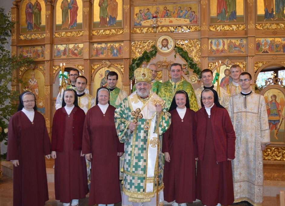 Vranov nad Topľou-Lomnica – Bratislavský eparcha vladyka Peter Rusnák zavítal na Svätodušný pondelok (16. mája 2016) do Kláštora Najsvätejšej Trojice k sestrám redemoptoristkám, aby tam o 17:00 hod.: slúžil archijerejskú liturgiu pri príležitosti odpustovej slávnosti. Liturgiu spoluslúžili kňazi o. Jozef Zorvan a o. Miroslav Mrug, asistovali bohoslovci. Po liturgii, na ktorej sa zúčastnili aj miestni veriaci, sa konalo myrovanie a procesia okolo chrámu.