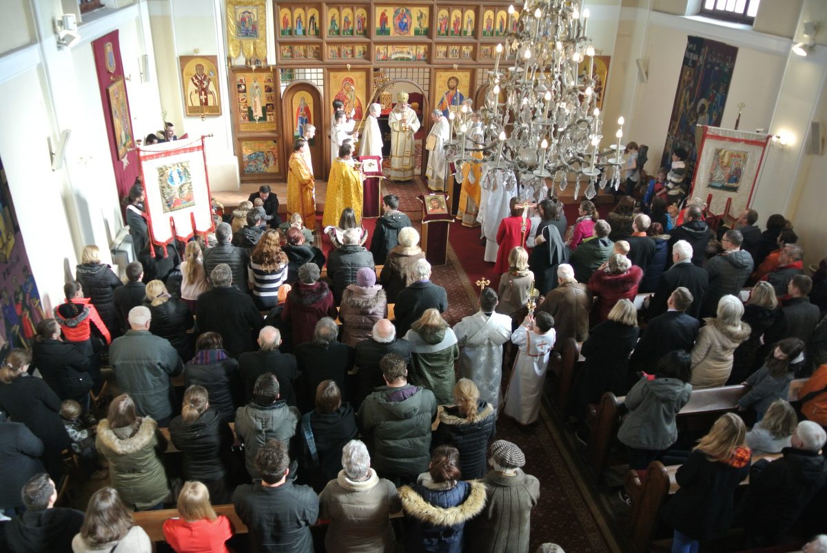 V mene farnosti pôsobiacej pri katedrále zablahoželal jubilantovi miestny farár o. Rastislav Čižik a daroval eparchovi netradične zhotovenú ikonu – reliéfnu ikonu s vyobrazením Kristovej tváre (Mandylion). Ikona, ktorej autorom je miestny farník, Ľubo Michalko, je zhotovená z neglazovanej pálenej hliny v kontraste s lesklým zlatom, osadenej do masívneho dreva, ktoré slúži ako podklad. Ako o. Rastislav uviedol, prvá pôstna nedeľu má vo východnej cirkvi prívlastok o úcte ikon. Vladykovi do jeho ďalšej biskupskej služby zaželal, aby aj on bol takou originálnou ikonou Ježiša Krista pre nás.