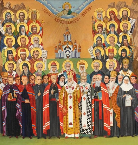 Ukrajinská gréckokatolícka cirkev medzi svojich svätých ráta apoštolom rovných veľké kniežatá Vladimíra a Oľgu, zakladateľov ukrajinského mníšstva prepodobných Anton a Teodózia Pečerských, jasné vzory pokory a nábožnosti, pokoja, spravodlivosti a neprotivenia sa zlu Borisa a Gleba, veľkého protagonistu zjednotenia Cirkvi hieromučeníka Jozafat, prepodobnú Jozafatu (Hordaševská), blahoslavených pratulinských mučeníkov a novodobých mučeníkov – biskupov, kňazov, rehoľné sestry, prepodobných, vyznavačov, svätiteľov, mučeníkov, hieromučeníkov ukrajinského národa, ktorí počas svojho života oslávili Boha. Po ich smrti sa na ich príhovor uskutočnili mnohé zázraky