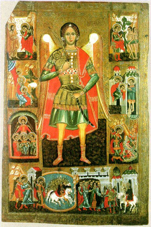 Na ikonách sa svätý Michal objavuje od začiatku šiesteho storočia samostatne, alebo s Gabrielom na víťazných oblúkoch, v apsidách, alebo na plastikách zo slonoviny v dlhom bielom rúchu ako sprievodca, alebo pomocník pri tróne Krista.
